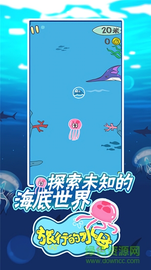 旅行的水母是一款全新的跑酷休闲游戏,简洁可爱的游戏画面,漂亮的水彩画风,惊险刺激的冒险之旅,有凶猛的鲨鱼和各种各样的危险等着你,考验反应力和眼力的时候到了,赶紧来挑战自己吧。欢迎来绿色资源网下载!