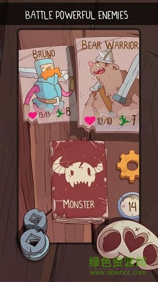 一款基于桌游探索和战斗的回合制卡牌游戏,同时融合了RPG以及Roguelite元素在其中,玩家可以在游戏中收集卡牌,遭遇各种怪物,神秘的寺庙,商店,随着你的深入,更多故事在等着你发现。