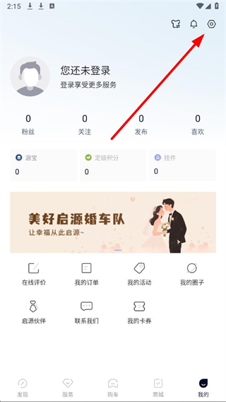 2、在我的页面右上角,找到设置图标并点击,跳转至设置界面。