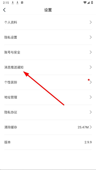 3、在设置页面中,找到消息推送通知选项并点击,进入对应的通知管理页面。