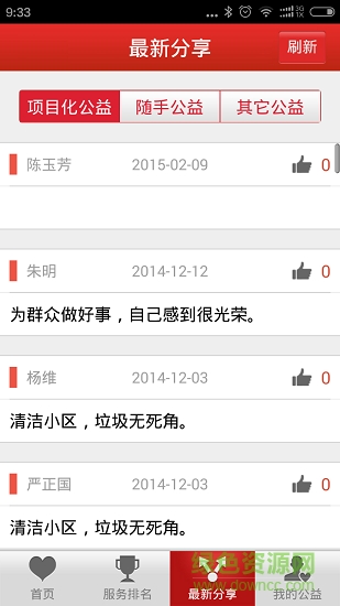 殷行党员用户可以在此客户端上查看最新的公益行内容,如:倡议书、公告、项目化公益、随手公益、其他公益、服务共享,还可以查看党员服务排名,最新公开的分享内容,以及查看和修改个人的相关信息、服务记录等等