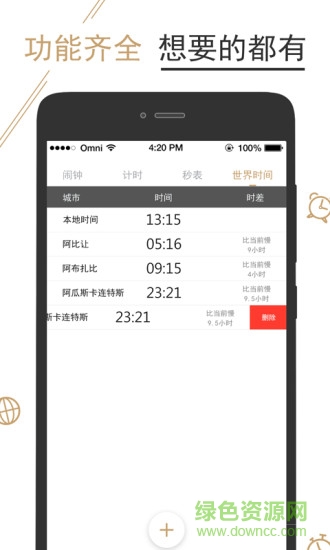 一款多功能、准时响、智能的闹钟应用,还有时钟、秒表与计时器功能。可以帮助你管理你的时间,给您的工作、生活带来极大便利,尤其适用白领、商务、学生、旅游人士;为您的生活、工作带来极大便利,用户装机必备工具之一,旨在为您提供完美的生活服务。