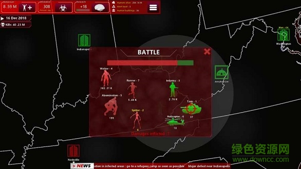 1、僵尸策略游戏,游戏的玩法就是讲究一个策略性,如何成功的让病毒感染,在城市里爆发,如何阻止抗毒药剂产生,摧毁军队这些都是乐友在游戏里需要仔细思考的;