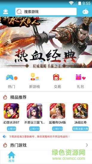 有v玩app是一款手机游戏bt盒子,转么为用户提供各类bt手游推荐下载的软件,超多热门手游变态版本随意找,让你一键搜索到你喜欢的游戏,同时还有超多福利等你领取,带你感受极速vip的畅快体验,喜欢的用户就来绿色资源网下载吧!