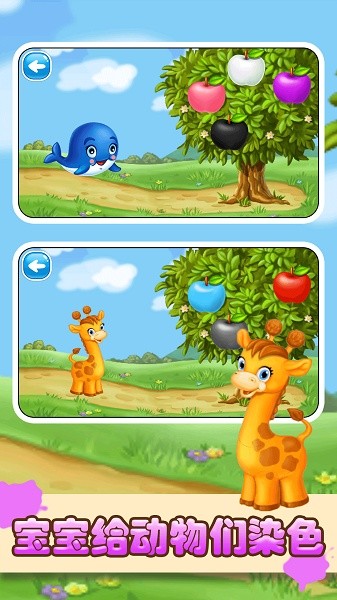 -教学简单,过程明了,让孩子们一学就会区别不同的颜色,宝宝可以对水果、蔬菜、树木、动物进行染色。