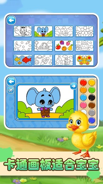 丑小鸭画画填色,专为宝宝设计的儿童早教软件,软件寓教于乐,采用宝宝善于接受的方式来锻炼宝宝的记忆力与专注力,让宝宝在填色过程中认识颜色并培养美学美感,有需要的用户可以下载使用!