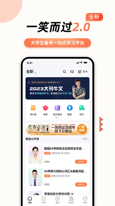 涵盖高考、四六级、考研、专四专八、能力英语等超精品课程,从备考到能力提升。