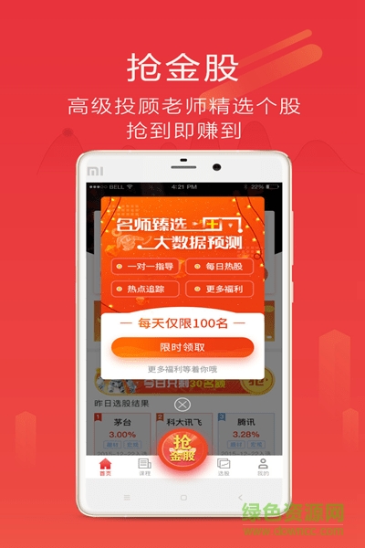 每日金股分析手机版能够让你实时了解各类金融资讯信息,拥有不错的诊股功能,支持高级投顾老师精准选股服务,更有大数据精算功能,让你天天选择好股,能够实时的了解股市的详细信息!
