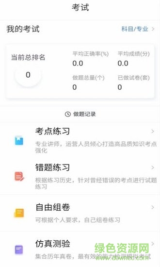 使用手机APP进行考试所需的试卷,试题,模块等形式的练习,通过对学员练习结果的分析和归纳,指导学员进行考试所必须的答题练习及答卷练习。