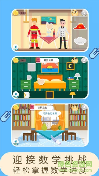 整个学习过程轻松易懂,通过活泼可爱的动画,引导孩子对于形状、数量、空间和时间等感知方面的认识,在快乐的游戏中发展儿童的数学思维以及培养孩子解决问题的能力。
