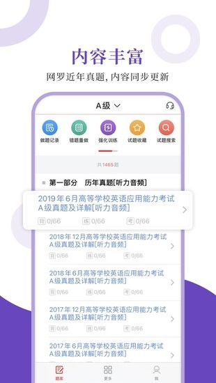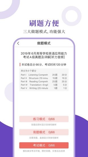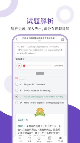 高等学校英语应用能力考试圣题库为用户带来更多的考题答案解析,让用户在刷题的同时可以更加清晰的理解更多的题目,让用户刷题学习更加的高效,还为用户智能推荐许多学习资料。