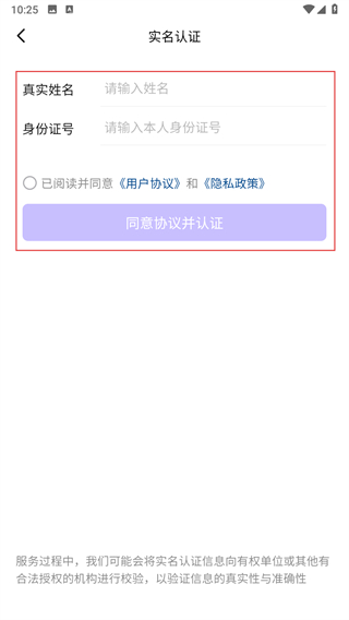 4、依次输入真实姓名身份证号,点击同意协议并认证。