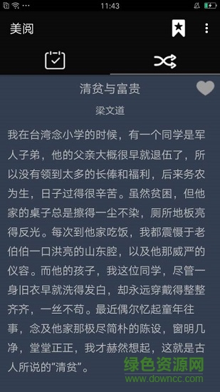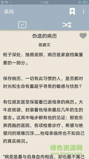 美阅是一款阅读应用,不同于其他的阅读小说,美阅会根据用户的需求每日给用户推送一期美文推送,每一篇都是名家散文十分推荐阅读,而且还有私人化定制阅读服务,界面也是十分美观清爽,完全没有任何多余的广告,是一款不可多得的阅读应用,喜欢就来绿色资源网下载吧!