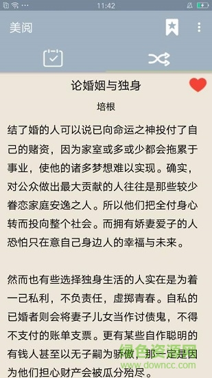 美阅是一款每日一文的第三方app,每天推荐一篇文章并且可以随机获取文章阅读,采用material design,界面简洁美观。
