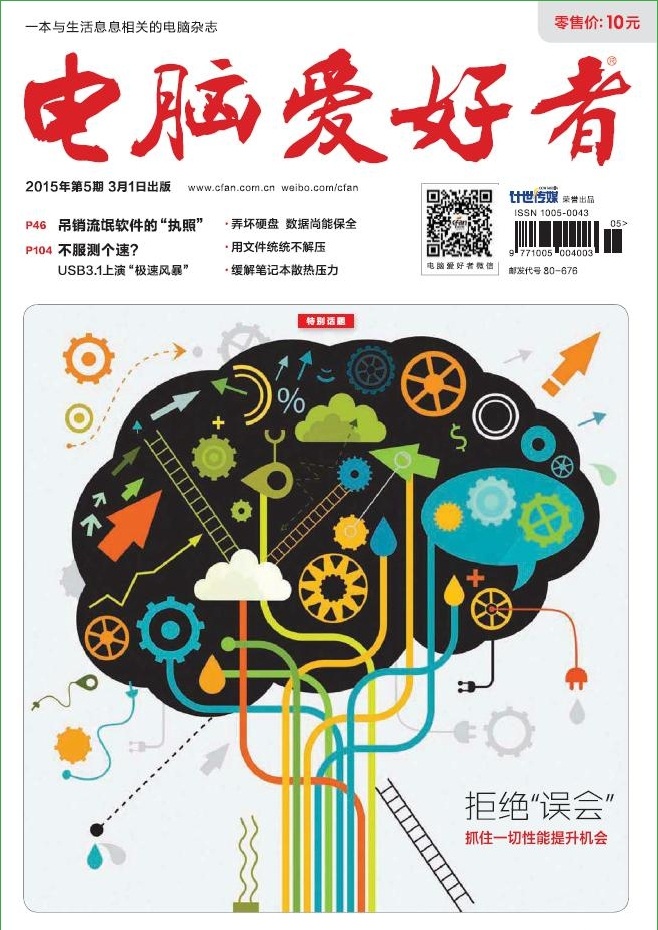 电脑爱好者2015年第5期pdf高清版,小编推荐《拒绝“误会”抓住一切性能提升机会》导读:无论软件硬件的功能多么丰富,性能多么强悍,操作多么易用,但在用户的使用中总会传出一些“不和谐”的声音。可能的确存在虚假宣传或夸大事实的地方,但也会有一些软硬件是因为错误的操作或设置而引起的“误会”,惨被淘汰出局......