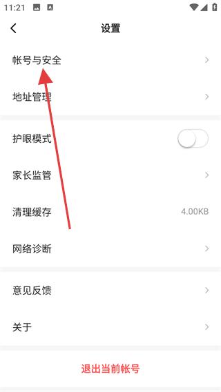 3、进入设置页面后,点击上方帐号与安全选项。