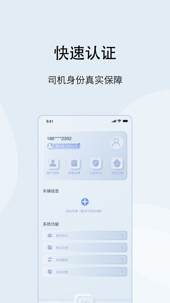 通过这款软件,司机朋友们可以上传自己的身份信息、驾驶证等来进行认证,添加车辆认证后就可以开始接单了;