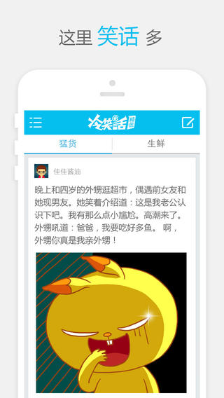 冷笑话精选ios版一款娱乐休闲笑话精选阅读软件,最近身边的基友蓝颜都玩微信朋友圈去了?其实冷先森也在微信驻扎很久了!微信中搜索 "lengiii" 就能找到我,快来关注~