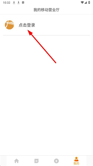 2、在我的移动营业厅页面,点击上方登录选项,进入登录界面。