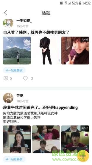 韩剧多多app是为喜欢看韩剧的用户提供的一款视频观看与讨论的应用软件,用户利用这款软件可以发布最新追更的韩剧,让更多喜欢此类韩剧的用户来参与谈论,还能分享自己的最新动态,获得他人的关注,感兴趣的朋友就来绿色资源网下载使用吧!