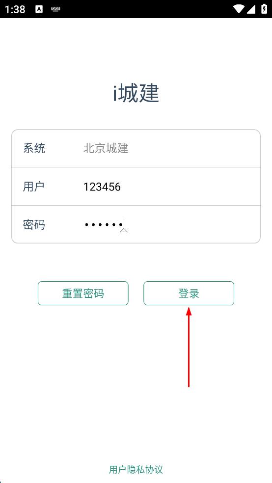 4、完成用户名和密码输入后,点击“登录”按钮,即可尝试登录“i城建”APP。