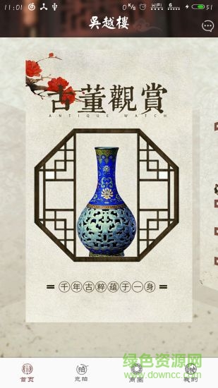 吴越楼app是线上的古玩瓷器交易售卖中心。里面可以观看实景拍卖,共同参与,保证物品的真实性,种类多样,茶具、花瓶等不同大小的瓷器,针对不同年龄的瓷器古玩爱好者,让用户尽情交流和淘好物。