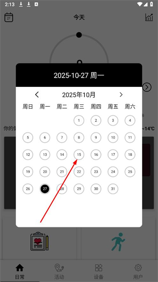 3、选择完成后,APP顶部将显示所选日期,完成时间日期的设置。