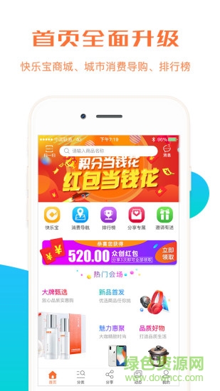 首页全面升级,快乐宝商城,城市消费导购,排行榜