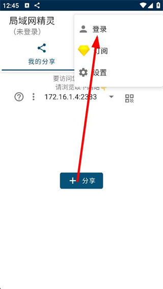 2、在弹出的菜单中,点击上方登录选项进入登录。