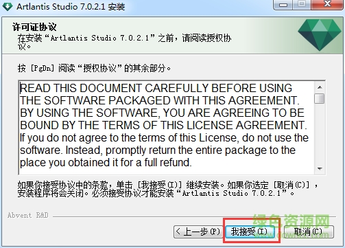 2.解压打开,选择运行“Artlantis Studio 7.0.2.1-Windows.exe”改程序,选择“中文”