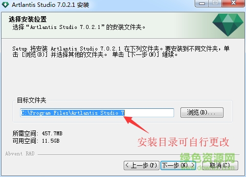 6.安装目录默认为“C:\Program Files\Artlantis Studio 7”,也可自行选择修改