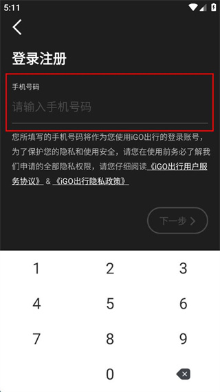 3、进入登录注册页面,在手机号码输入框中填写个人手机号码,准备进行后续操作。