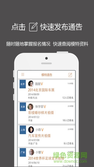 2.汇聚全国各地区的真实通告,随时随地发布通告、一个通告成千上万模特都能看到!随时随地接通告,好通告一个也不会错过!