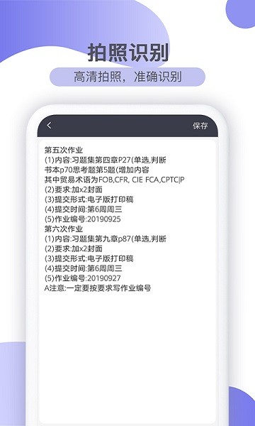 拍照识别:拍照直接识别,自动选取识别内容,智能提取文字信息