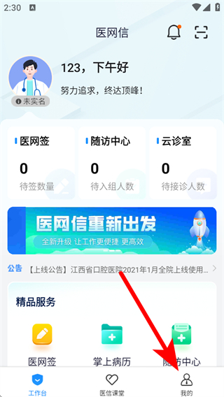 1、打开医网信APP,点击右下角我的,进入个人页面。