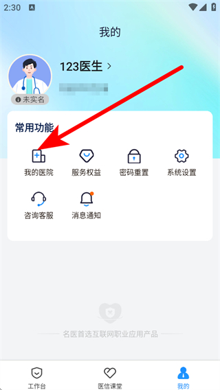 2、在我的页面的常用功能区域,我们需要点击我的医院。