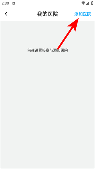3、进入我的医院页面后,我们需要点击右上角添加医院。