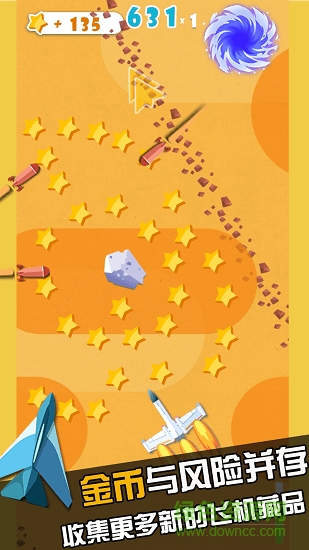 不同于传统的触屏操作,《暴走纸飞机》首次创新使用了体感来控制飞机的飞行,