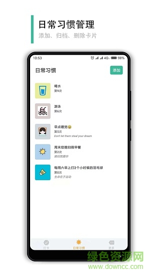 1、日常习惯管理,添加、归档、删除卡片