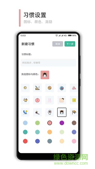 3、习惯设置,图标、颜色、激动
