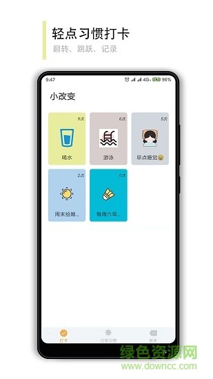 小改变app可以帮助用户培养好习惯。使用本软件可以好习惯记录下来。到什么时间该做什么事情了,系统都会以闹钟的形式提醒用户。设计的非常贴心。喜欢的朋友快来绿色资源网下载吧。