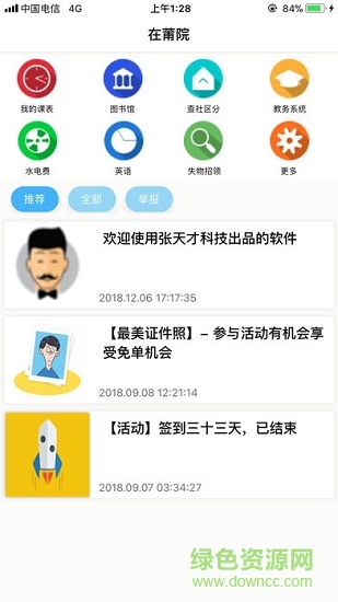 5.从院系动态、新闻网、数字校园、课程表下载为老生提供方便