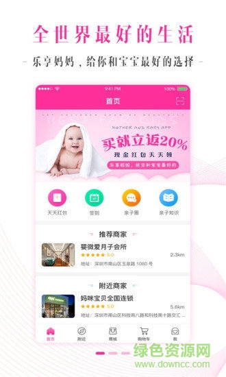 乐享妈妈app是一个以母婴商品为主的手机购物软件,在这里拥有海量的商品和大量的折扣活动举行,并且这里的商品都是经由官方指定认证销售的,让用户可以放心的购买使用,更有专业的配送人员送货上门,用户可以当场验收,有任何问题都能退换哦,喜欢购物的朋友可不要错过了,欢迎来绿色资源网下载使用。