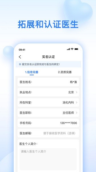 1、协助医生进行实名认证,替医生申请打印桌牌和名片;