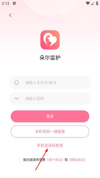 2、在登录页面点击手机验证码登录,进入验证码登录页面。