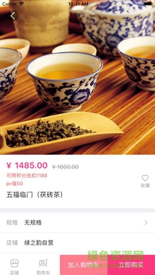 1. 绿韵宝功能模块,包括:首页、购物车、我的;