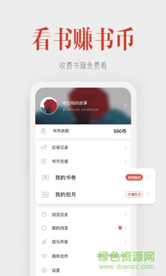 一边看书,一边赚书币。看一本,兑一本。阅读时长随时可兑换,付费书籍一样免费看。