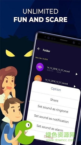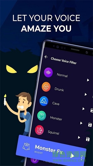 5.多种变声效果可选:萝莉、大叔、小孩、惊悚、搞怪、空灵、山谷、大堂、教室、现场、小黄人、慢吞吞...... 变声时只需轻轻一点,让你成为自带BGM的潮人