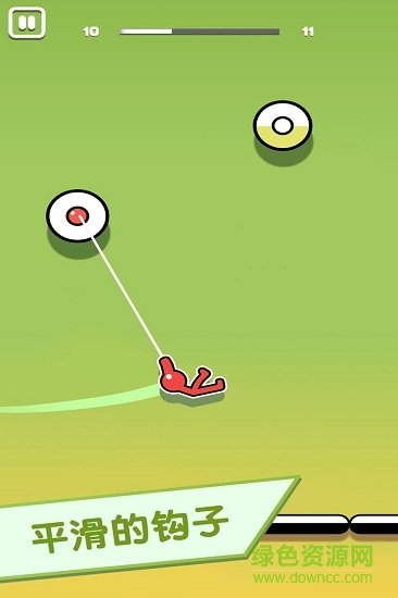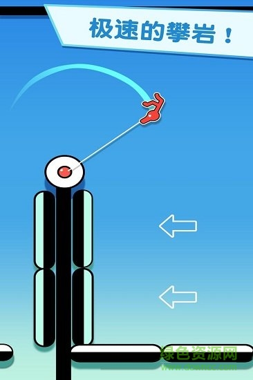 是款非常有趣的休闲手游,以跳跃玩法为核心,玩家在游戏中通过点击屏幕来释放绳索让火柴人进行悬挂荡悠,选择合适的时机松开火柴人就会旋转跳跃。玩家利用反弹和旋转躲避障碍,连续执行华丽动作,快速通关。