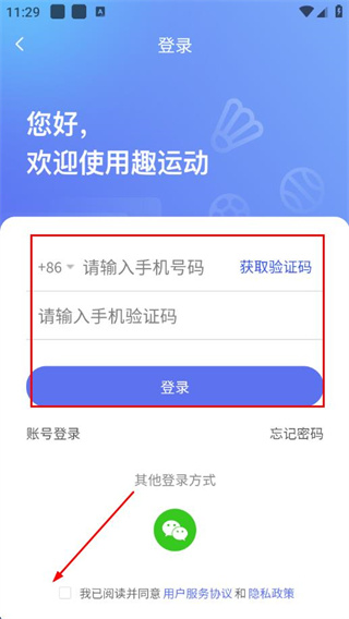 3、在登录页面选择手机号验证,勾选协议后输入信息完成注册。